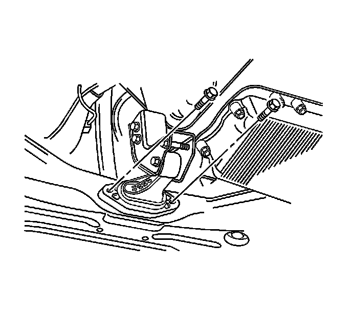 Caution: Failure to support crossmember can cause crossmember to drop to the ground when crossmember mounting bolts are removed.