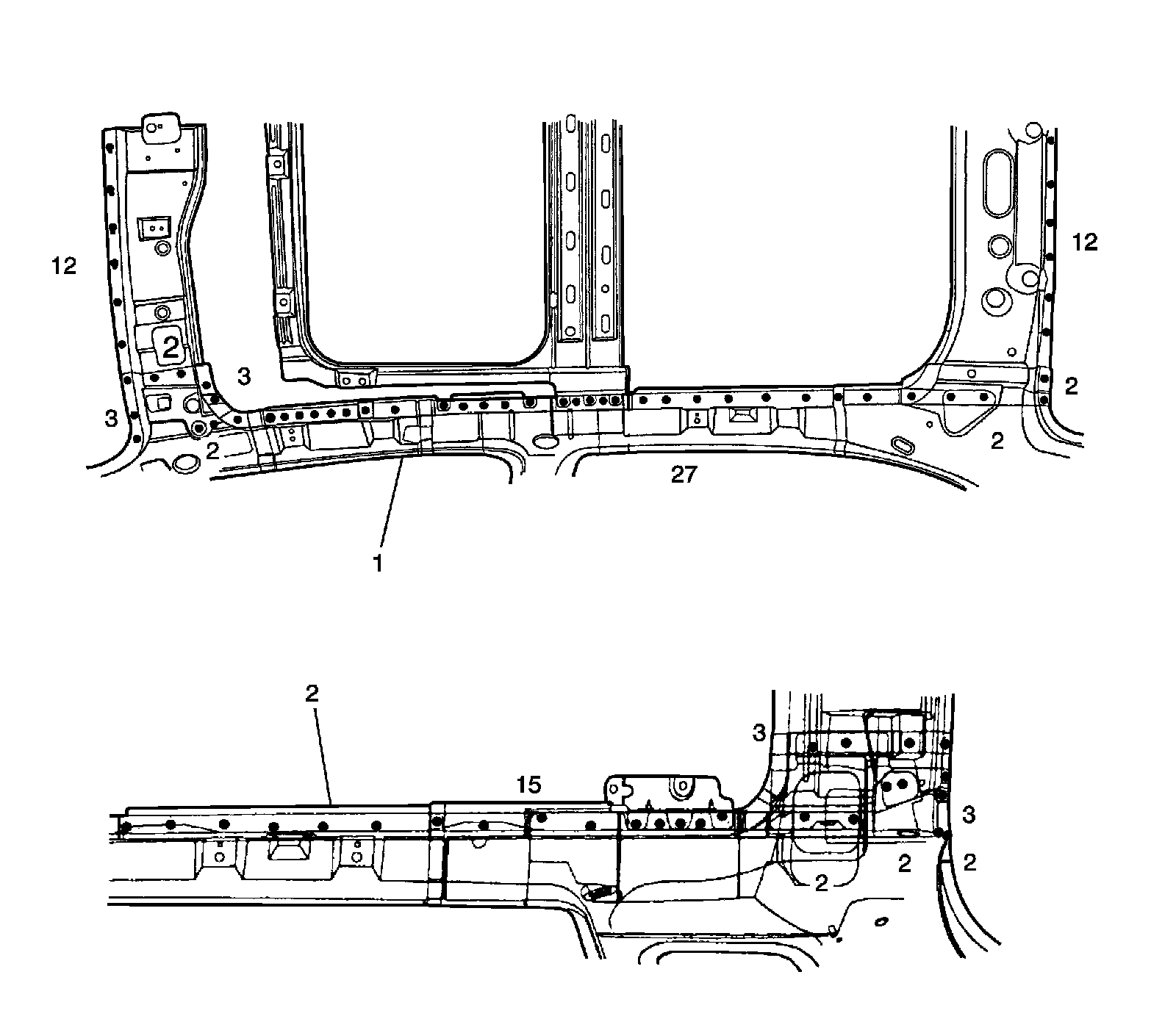 The rear floor panel is the base of the rear body and it is critical for the rigidity of the rear body. During replacement, refer to Dimensions - Body () to determine the position to set the rear floor properly.