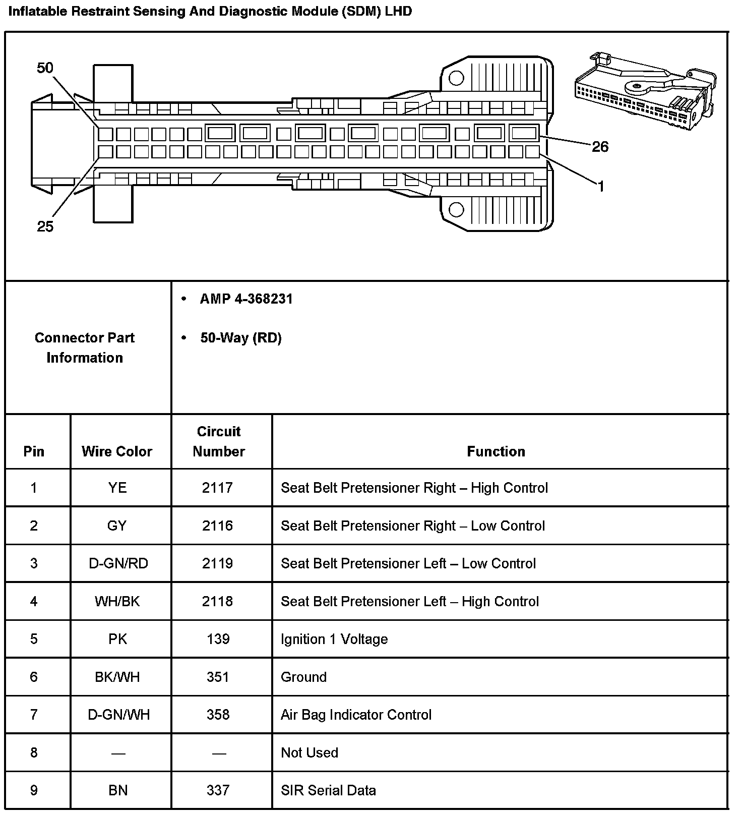 Inflatable Restraint Sensing And Diagnostic Module (SDM) RHD Part 1: