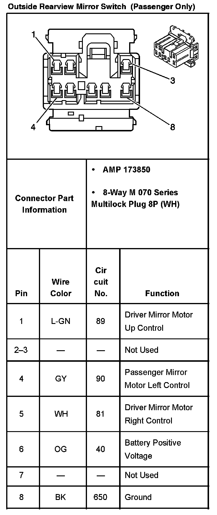 Outside Rearview Mirror Switch - (Passenger Only):