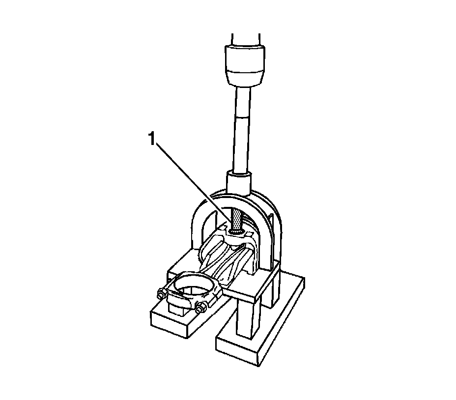 5. Install the piston pin into the piston and connecting rod assembly using J 24086-B (1).