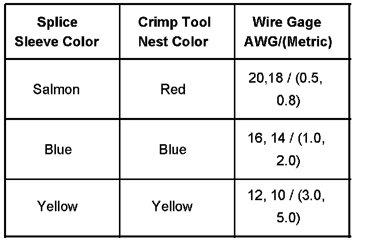 IMPORTANT: Use only GM splice sleeves, other splice sleeves may not protect the splice from moisture or provide a good electrical connection.