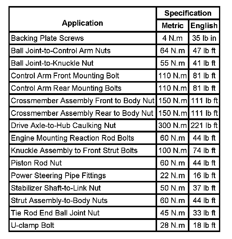 Fastener Tightening Specifications: