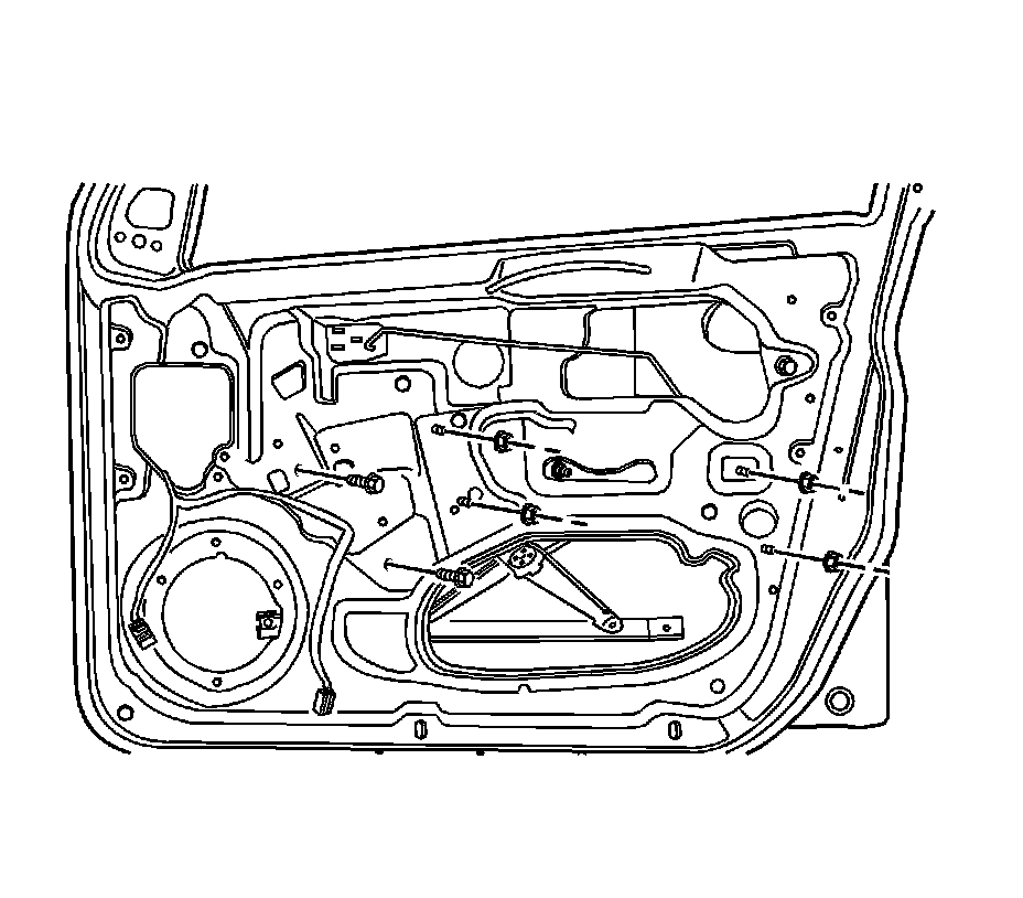 1. Remove the front door trim panel. Refer to Front Side Door Trim Panel Replacement.