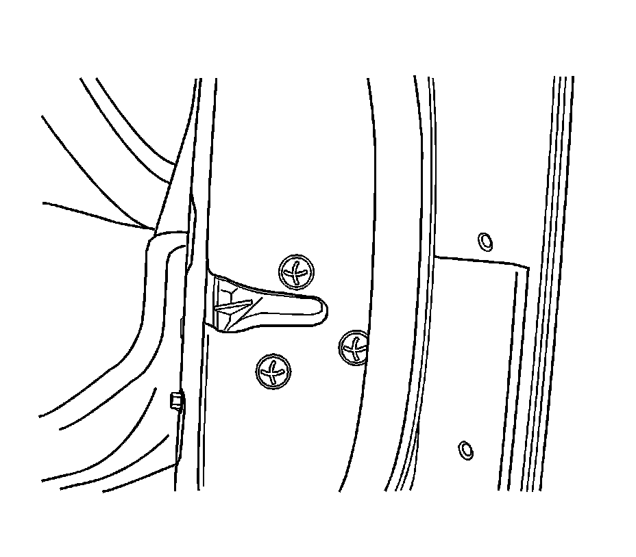 2. Remove the door seal trim. Refer to Door Water Deflector Replacement (Door Water Deflector Replacement) .