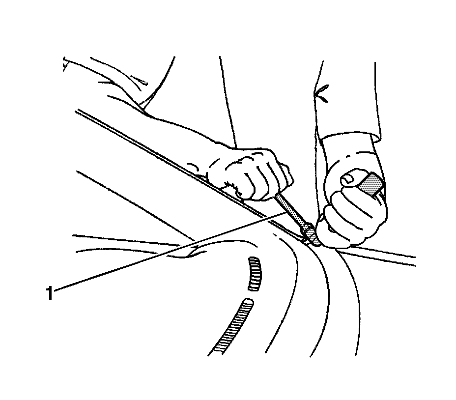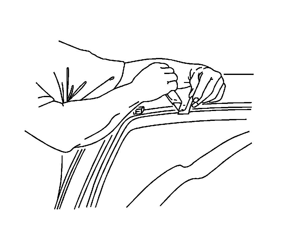 4. Using the glass sealant remover J 24402-A , cut the adhesive around the windshield.