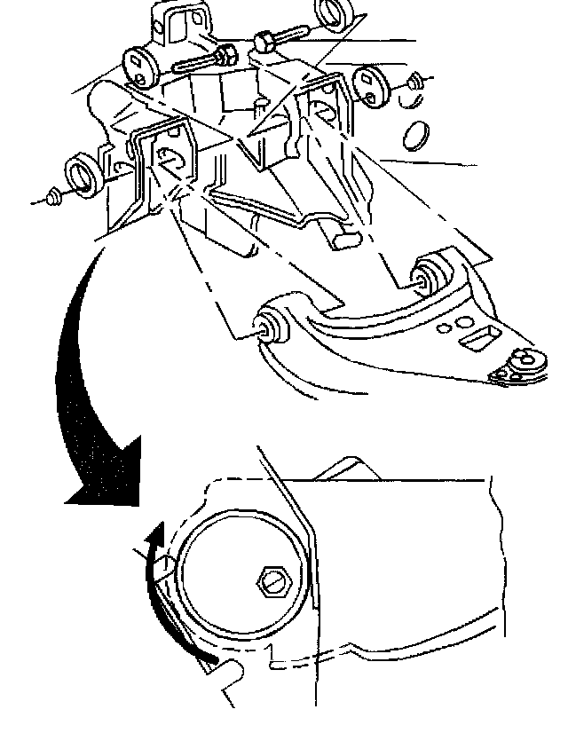 To adjust the caster and the camber, loosen the upper control arm-to-frame attaching nuts. Rotate the cam by rotating the bolt head.