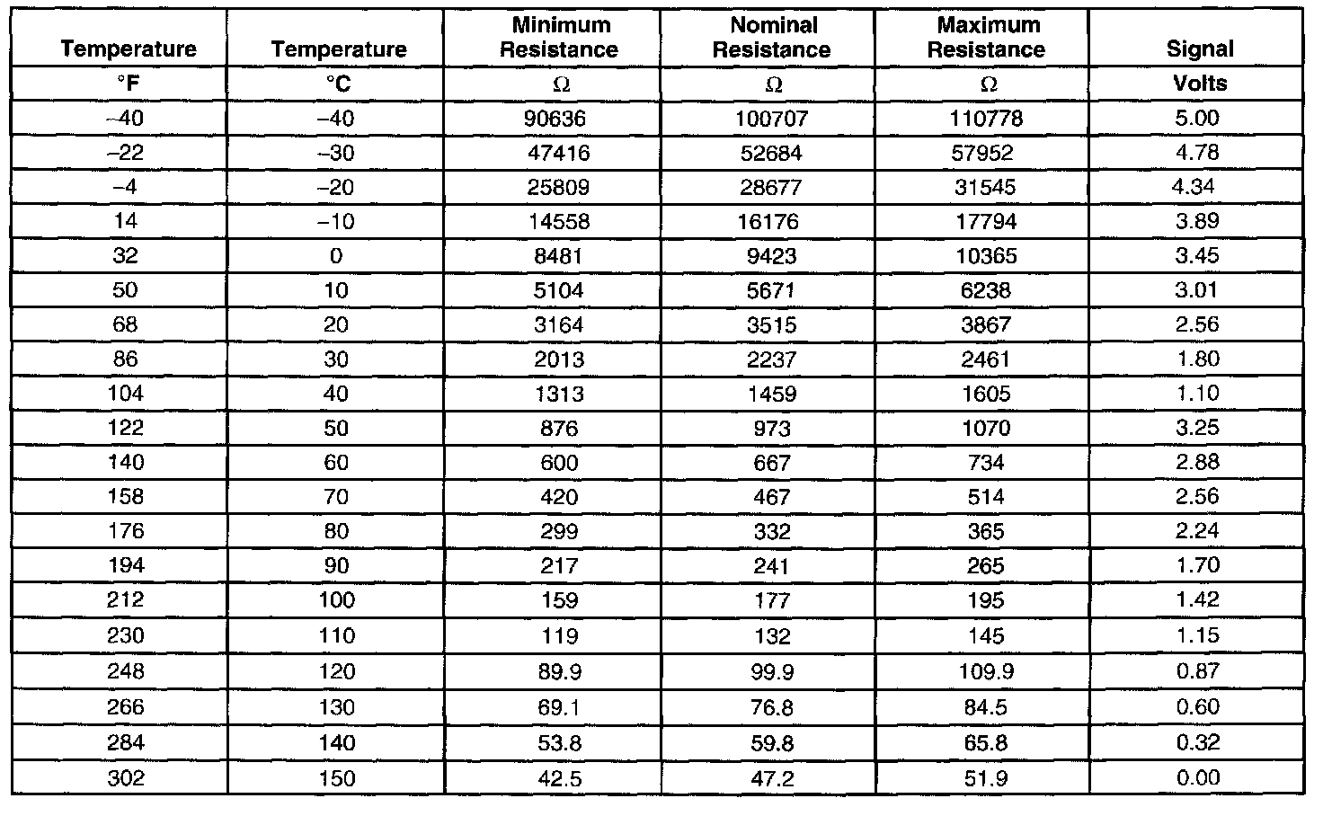 Transmission Fluid Temperature (TFT) Sensor Specifications: