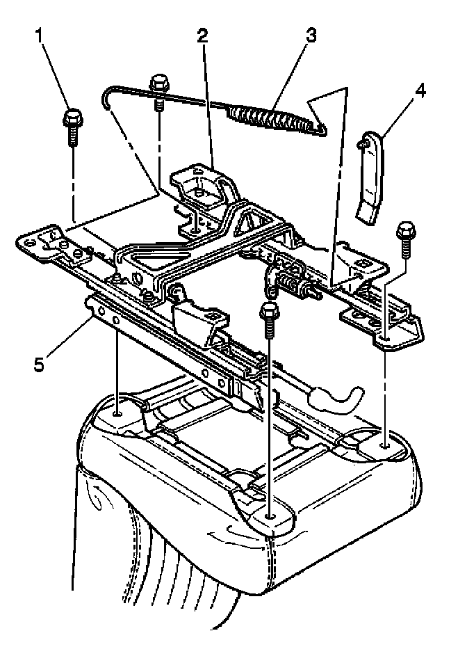 9. Remove the seat adjusters (2,5) from the front bucket seat.
