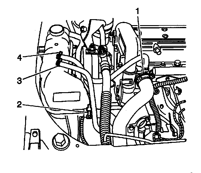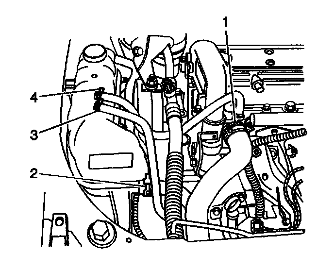 4. Use the J 38185 in order to install the surge tank hose (3) to the radiator.