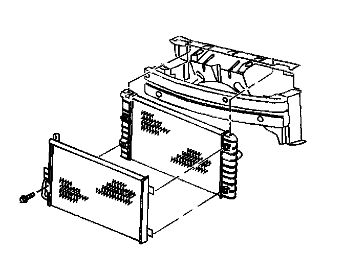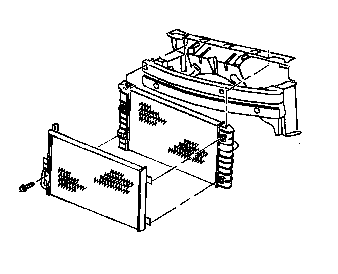 19. Remove the condenser from the radiator, if equipped. The radiator can be removed without discharging the A/C System.