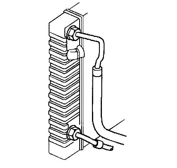 7. Install the lower transmission oil cooler line to the radiator.
