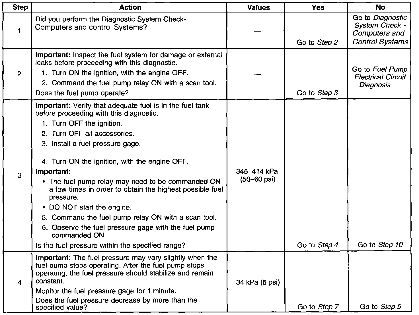 The control module enables the fuel pump relay when the ignition switch is turned ON. The control module will disable the fuel pump relay within two seconds unless the control module detects ignition reference pulses. The control module continues to enable the fuel pump relay as long as ignition reference pulses are detected. The control module disables the fuel pump relay within two seconds if ignition reference pulses cease to be detected and the ignition remains ON.