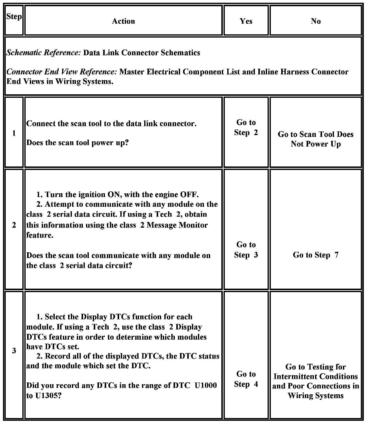 10. An open in the class 2 serial data circuit between the DLC and the body control module (BCM) will prevent the scan tool from communicating with any module. This condition will not set a DTC.