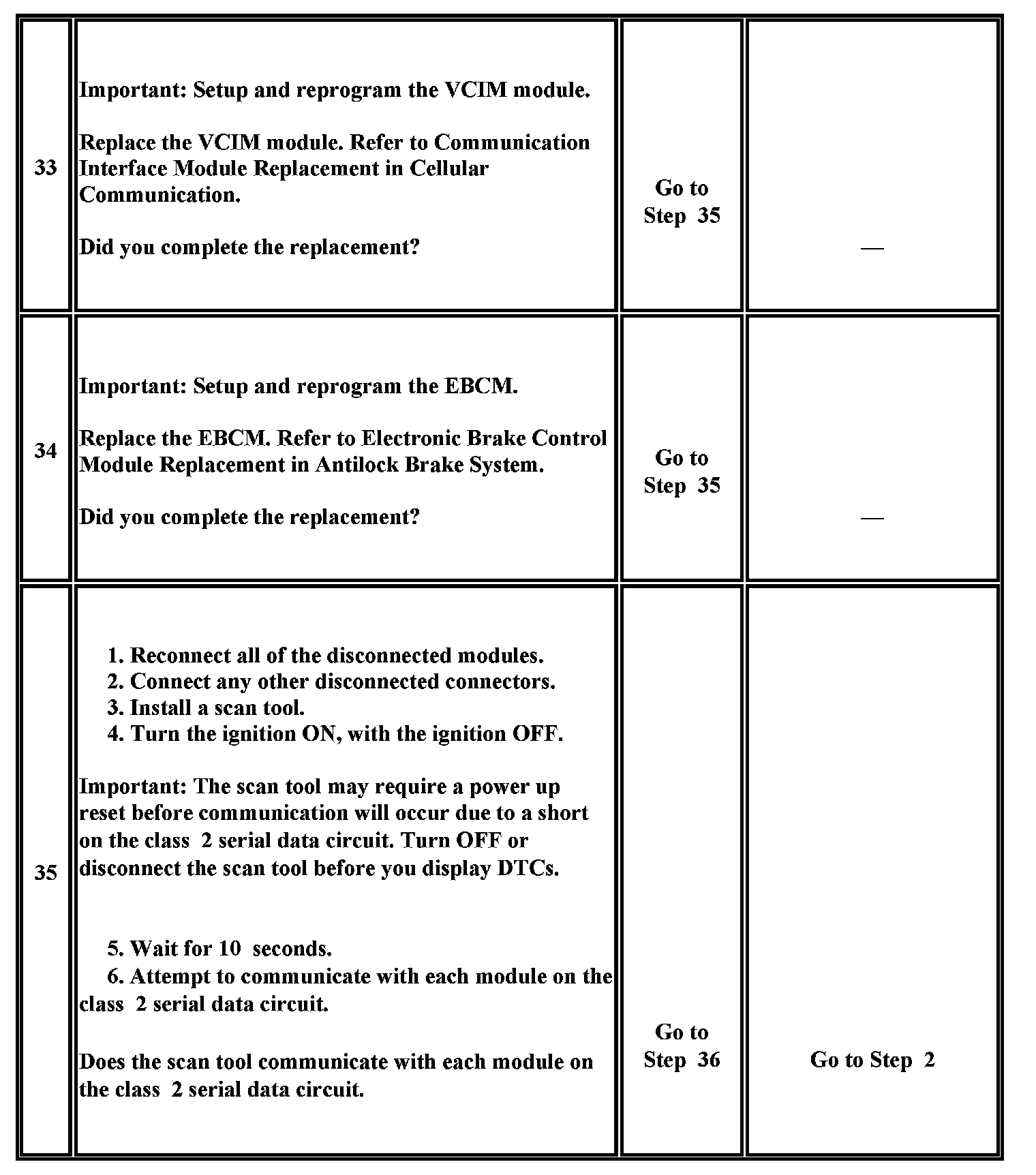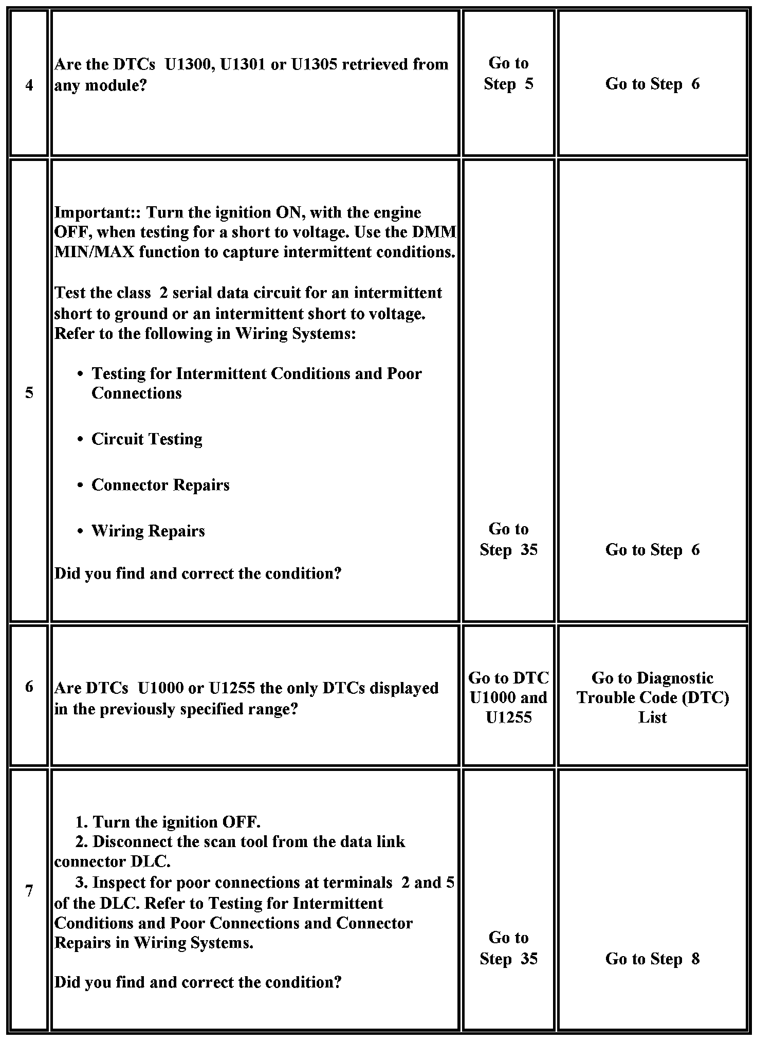 2. A partial malfunction in the class 2 serial data circuit uses a different procedure from a total malfunction of the class 2 serial data circuit.