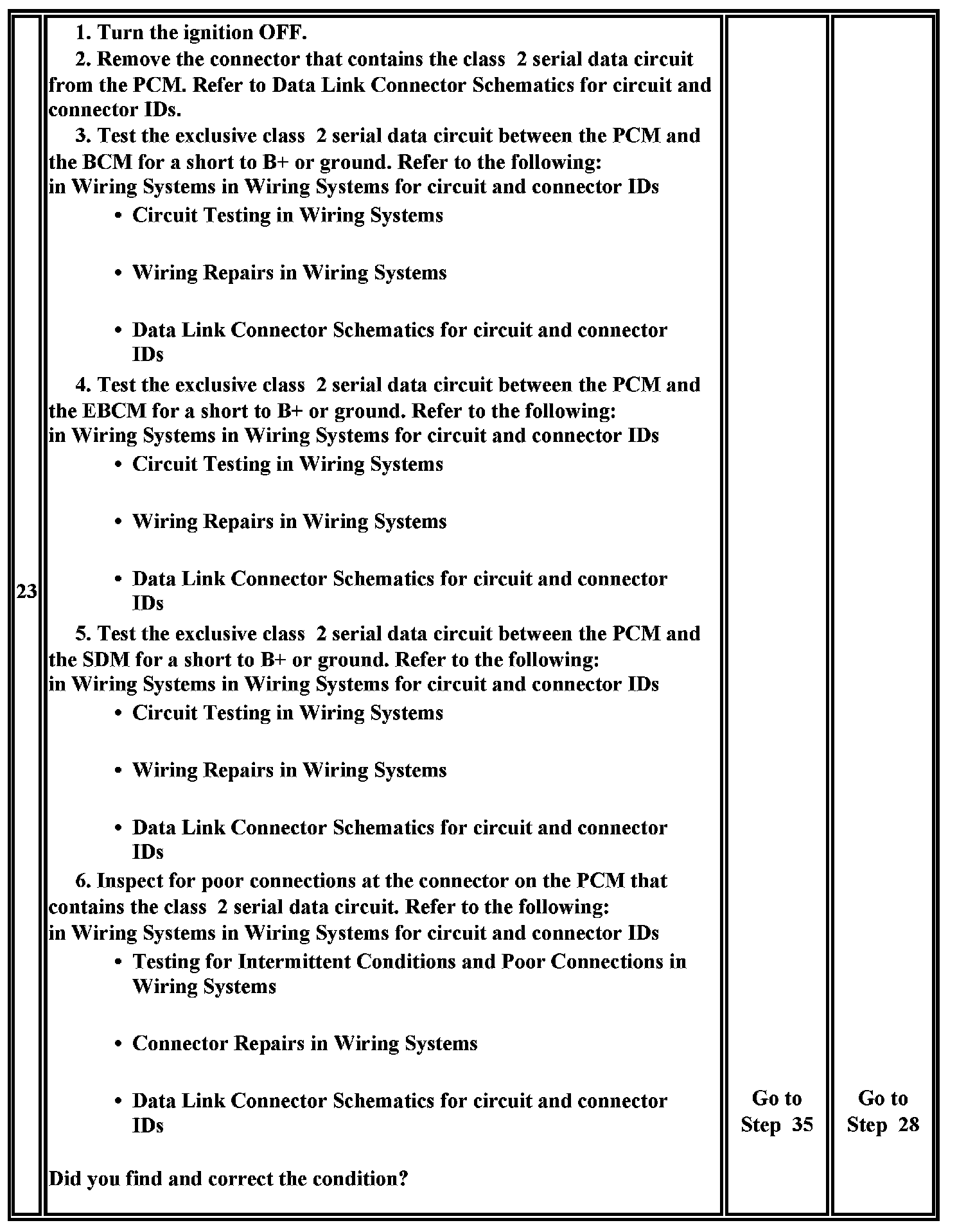 23. This test analyzes the condition of the wiring and connectors in the class 2 serial data circuit of the PCM.