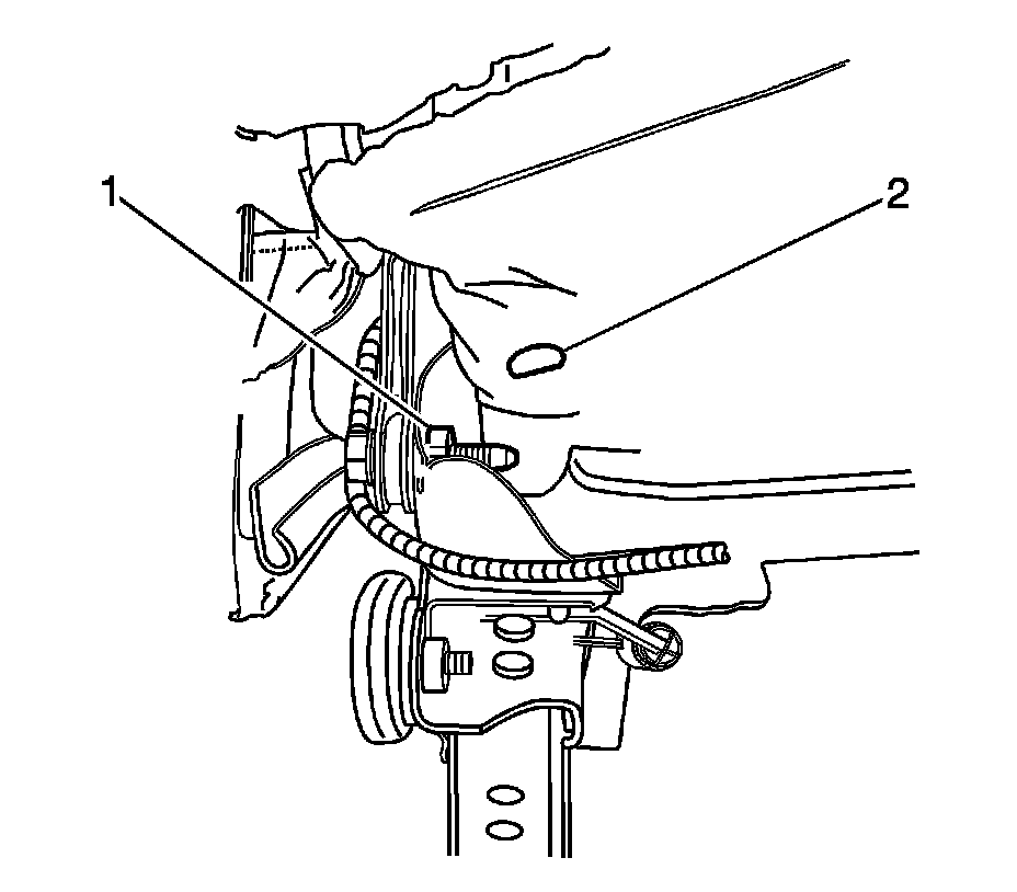5. Remove the loop tab (2) from the seat back recliner bolt (1).