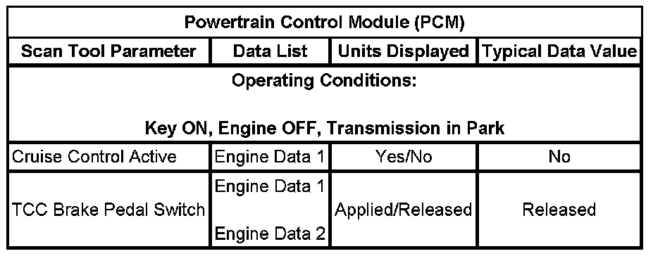 Powertrain Control Module (PCM) Scan Tool Data List: