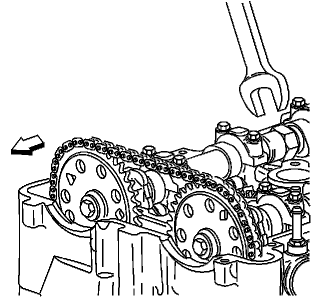 13. Use a 24 mm wrench to hold the camshafts from turning.