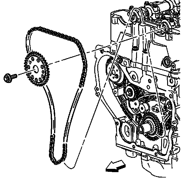 14. Remove the exhaust camshaft sprocket bolt and discard.