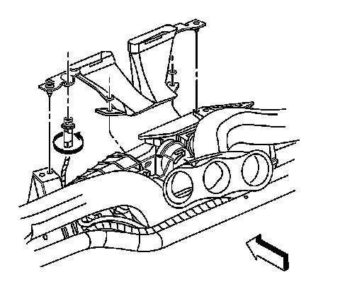 3. Install the two push on retainers holding the defroster duct to the HVAC module assembly.