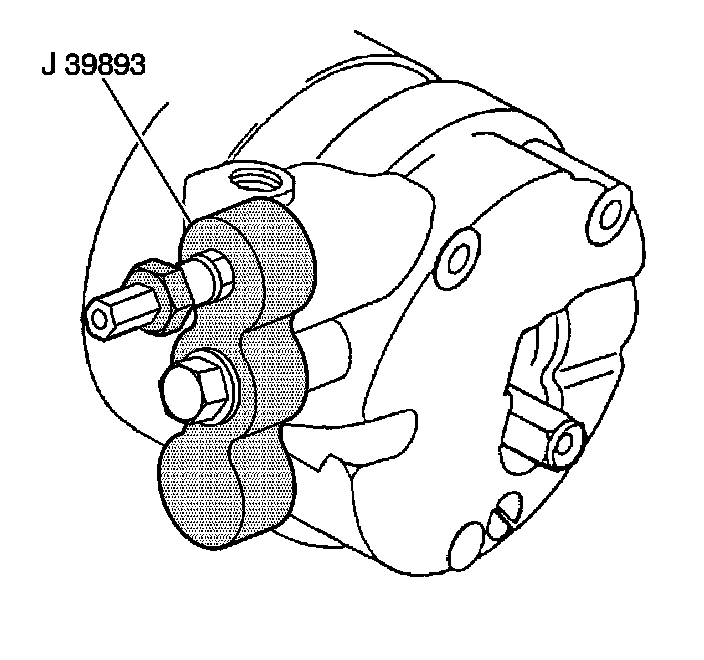 1. With the sealing washers in place, install the J 39893 on the rear head of the compressor.