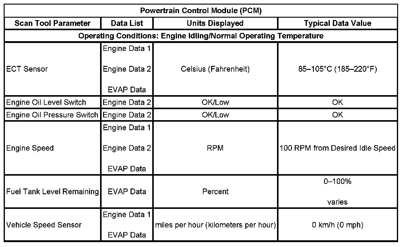 Scan Tool Data List - Powertrain Control Module (PCM)