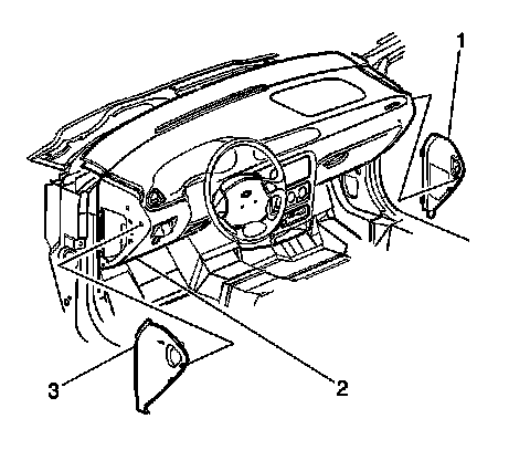 2. Remove the outer trim covers (1,3) from the Instrument Panel (I/P) carrier (2).