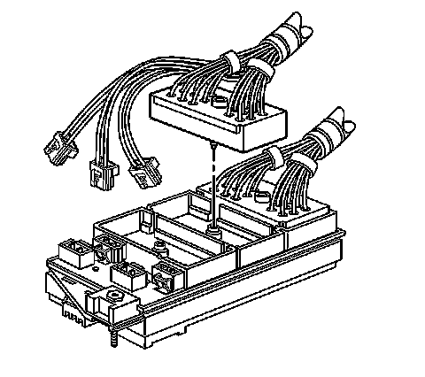 5. Install the bolts retaining the engine, IP, and forward lamp wiring harness connectors to the junction block.