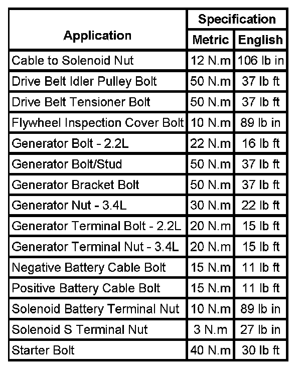 Fastener Tightening Specifications:
