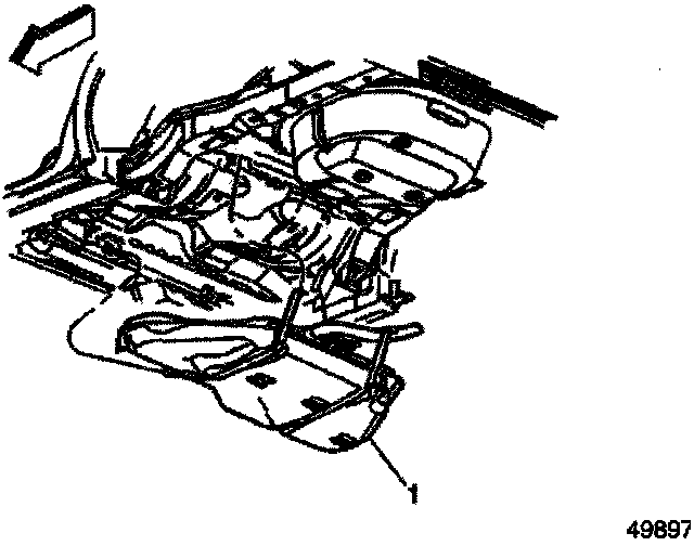 21. Position the exhaust shield to the underbody and install the screws and push-in fastener.