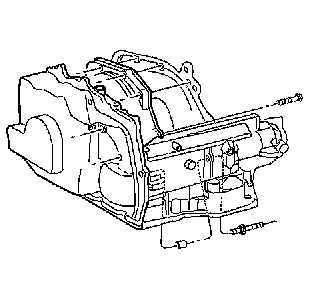 21. Remove the transmission cooler lines by removing the nut holding the bracket to the transaxle case.