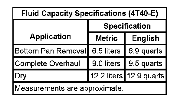 Fluid Capacity Specifications: