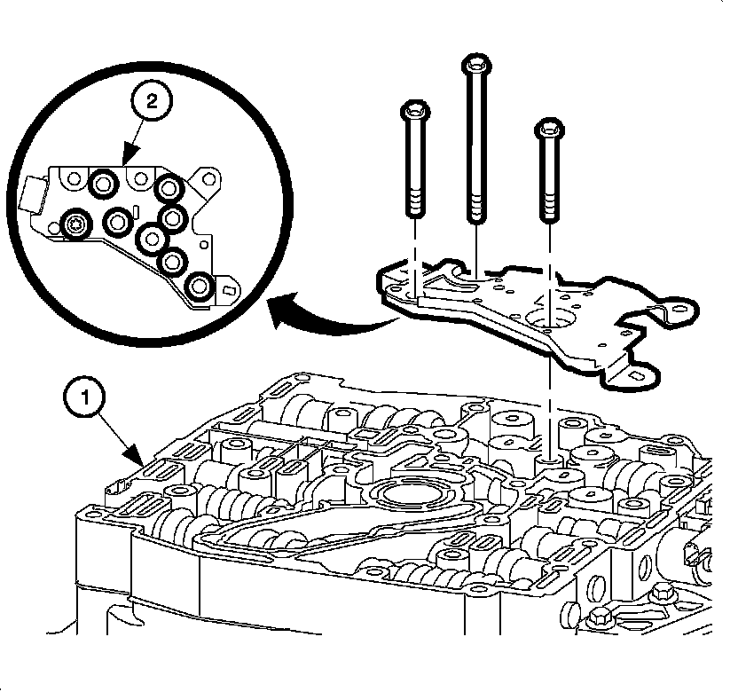 5. Remove the TFP switch assembly bolts and remove the switch assembly from the control valve body. The 7 TFP switch O-rings are reusable if not damaged and should remain with the pressure switch assembly.