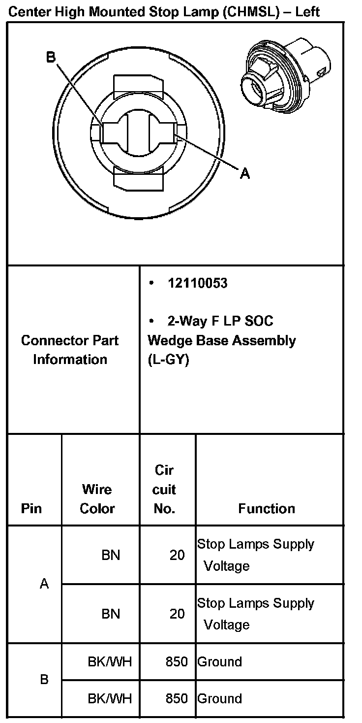 Center High Mounted Stop Lamp (CHMSL) - Left:
