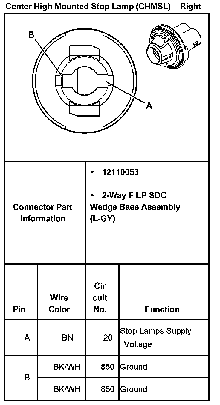 Center High Mounted Stop Lamp (CHMSL) - Right: