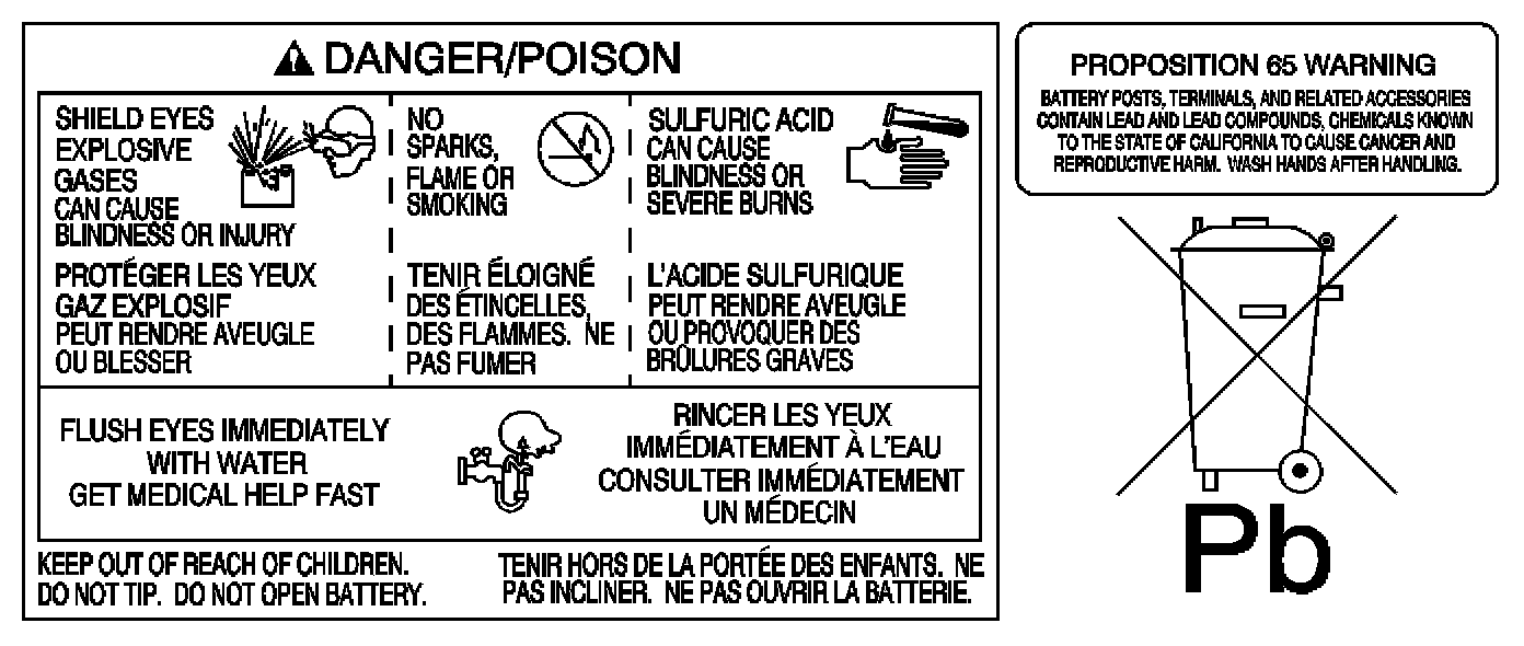 - Do not allow the battery electrolyte to contact the eyes or the skin. Flush immediately and thoroughly any contacted areas with water and get medical help.