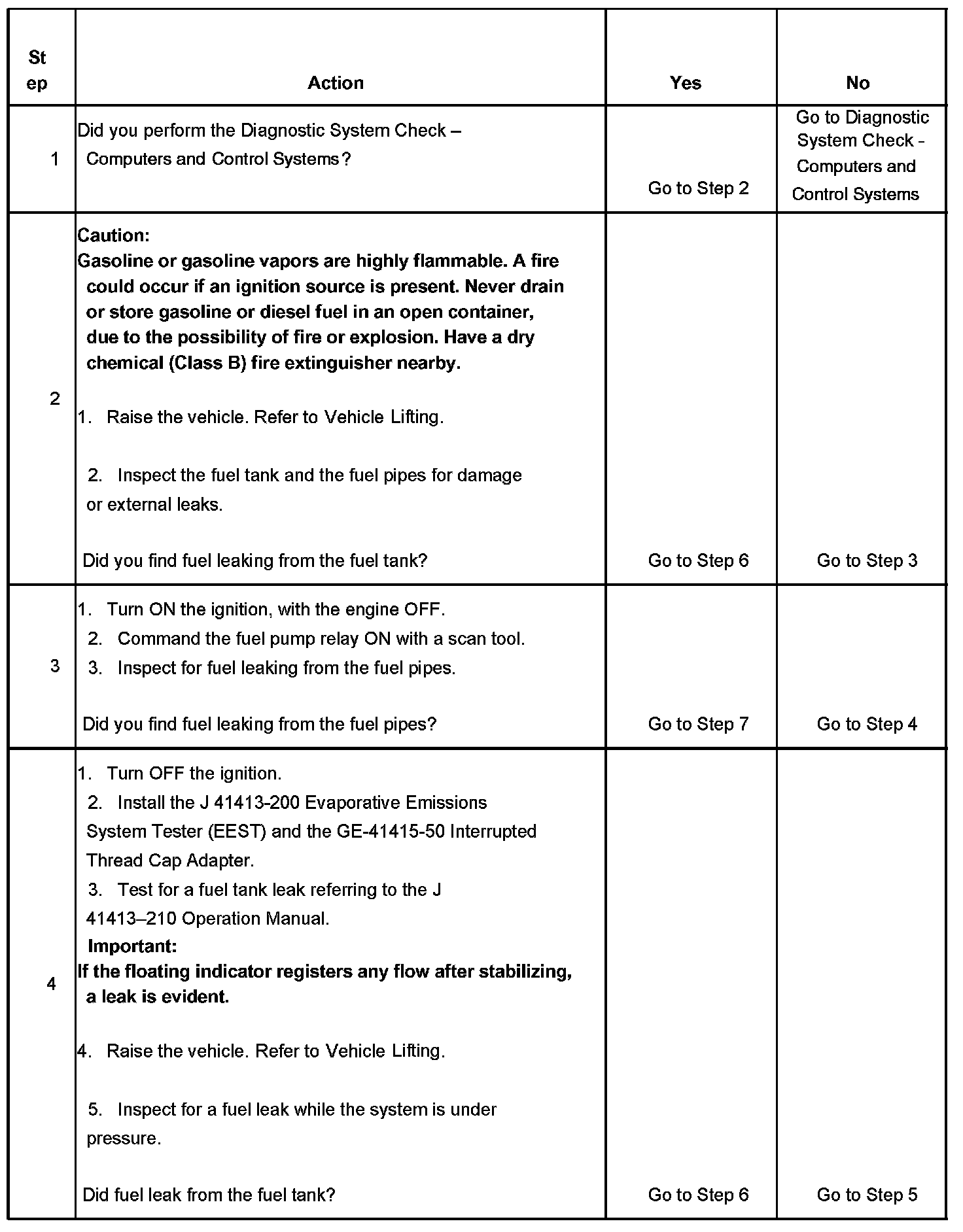 The fuel tank leak test is used to locate any fuel or fuel vapor escaping the fuel tank area. Fuel vapors escaping above the fuel level will be detected, if more than the calibrated amount, when the evaporative emission (EVAP) diagnostics complete one test cycle. The malfunction indicator lamp (MIL) will illuminate after the EVAP diagnostics have failed two test cycles.