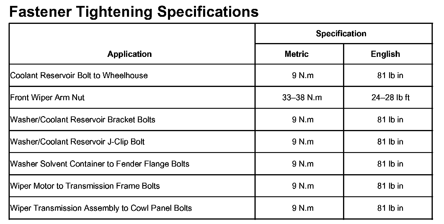Wiper and Washer Systems: Specifications