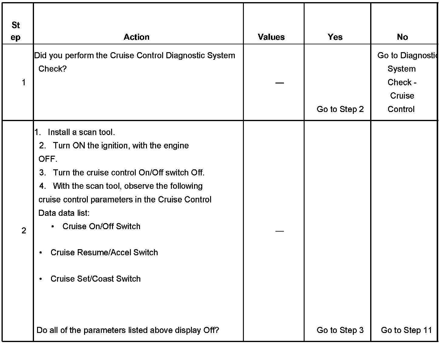 CRUISE CONTROL INOPERATIVE/MALFUNCTIONINGDIAGNOSTIC AIDS