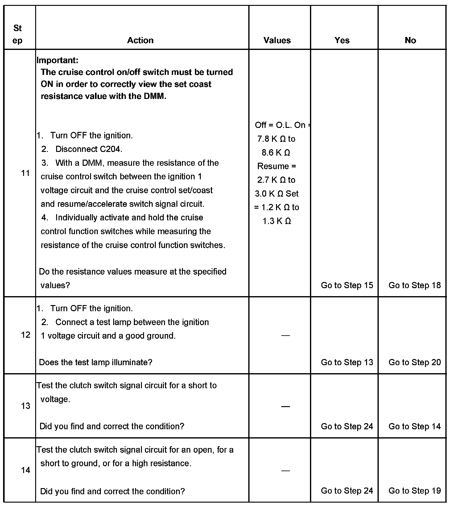 - Inspect for proper adjustment of the cruise release switch.