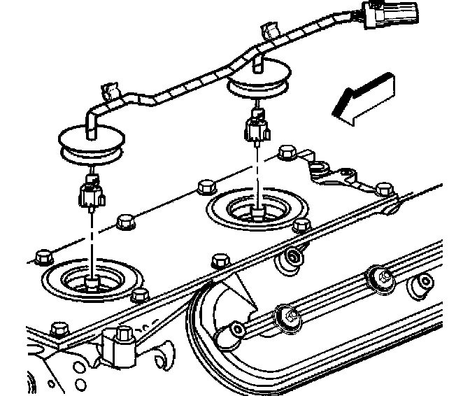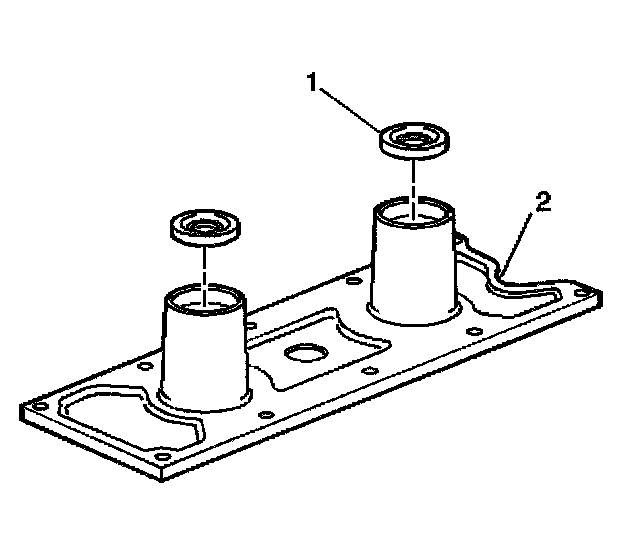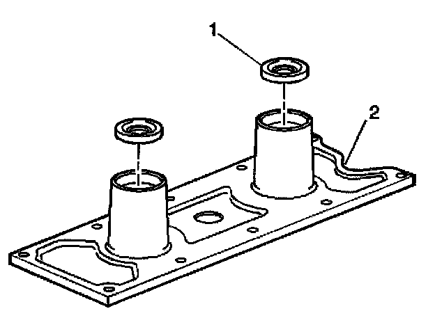 1. Install NEW knock sensor oil seals (1) into the valley cover (2).