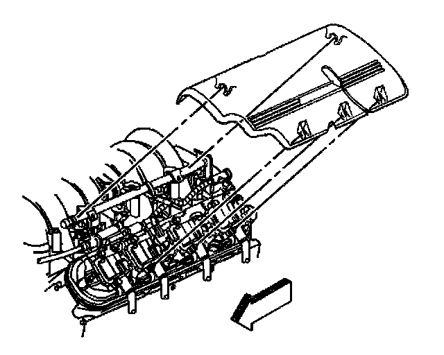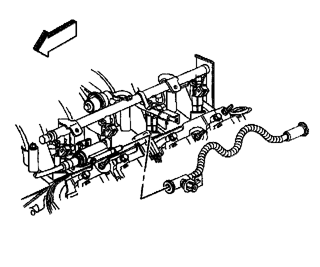 Caution: The fuel rail stop bracket must be installed onto the engine assembly. The stop bracket serves as a protective shield for the fuel rail in the event of a vehicle frontal crash. If the fuel rail stop bracket is not installed and the vehicle is involved in a frontal crash, fuel could be sprayed possibly causing a fire and personal injury from burns.