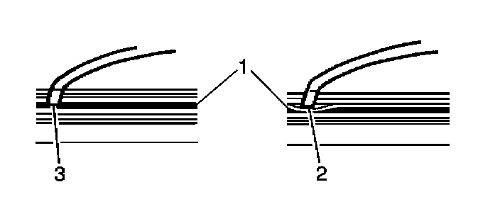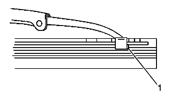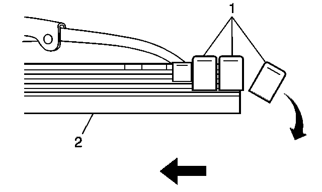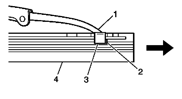 1. Starting at the heel end of the wiper blade slide the wiper blade element, notched end last, into the wiper blade claw sets (1). The plastic retainer caps will be forced off as the element is fully inserted.