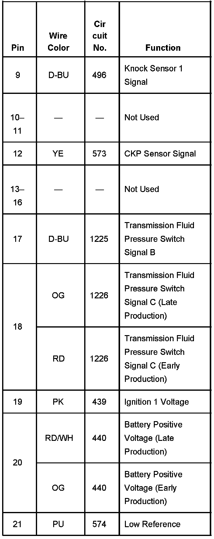 Powertrain Control Module (PCM) Connector C1