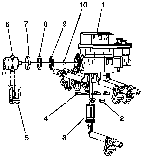 The fuel meter body assembly (1) attaches to the lower intake manifold. The fuel meter body assembly performs the following functions: