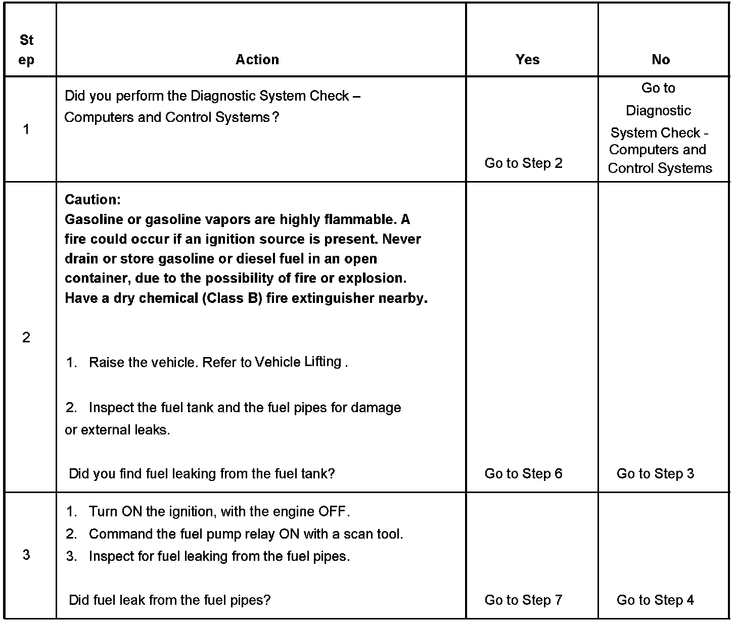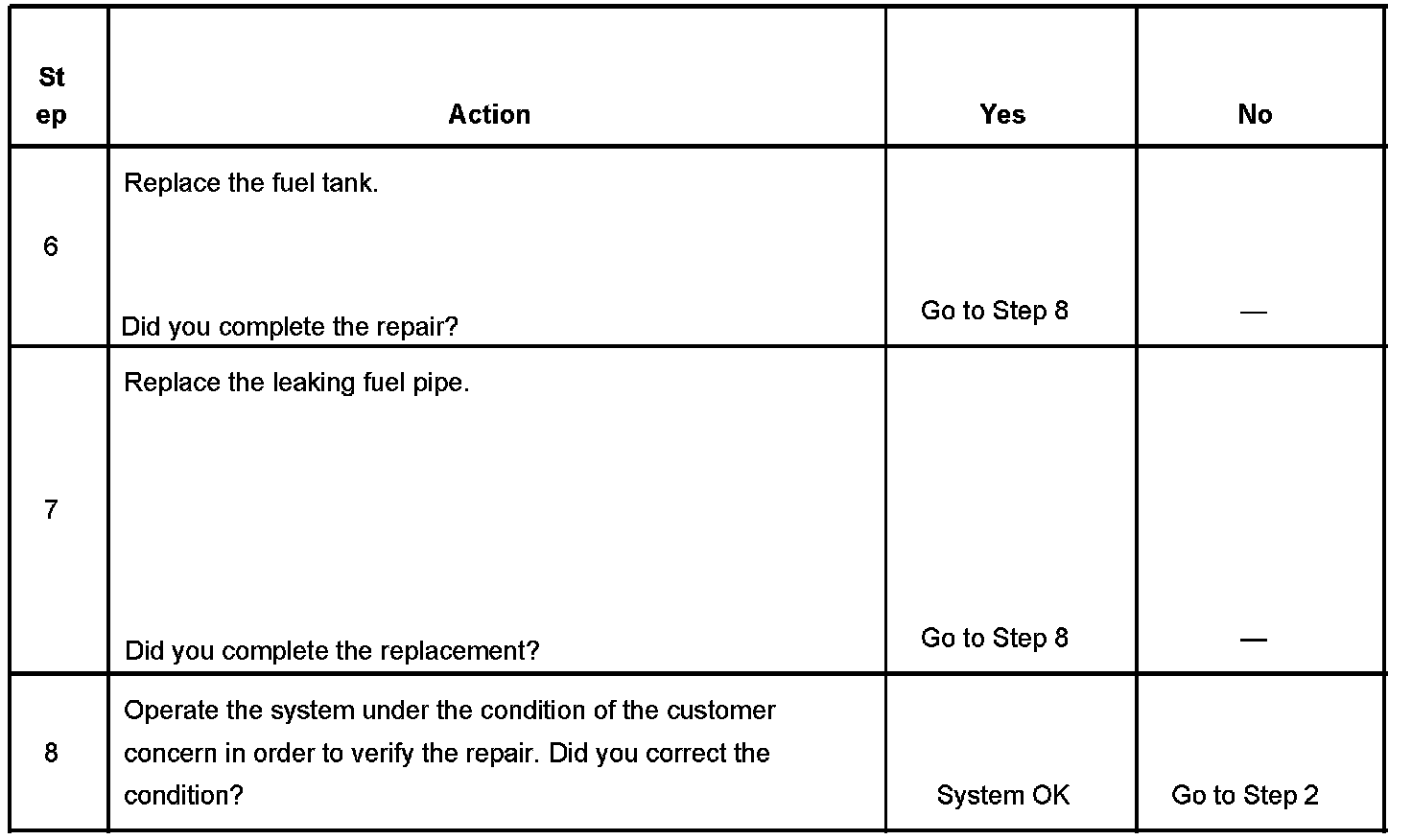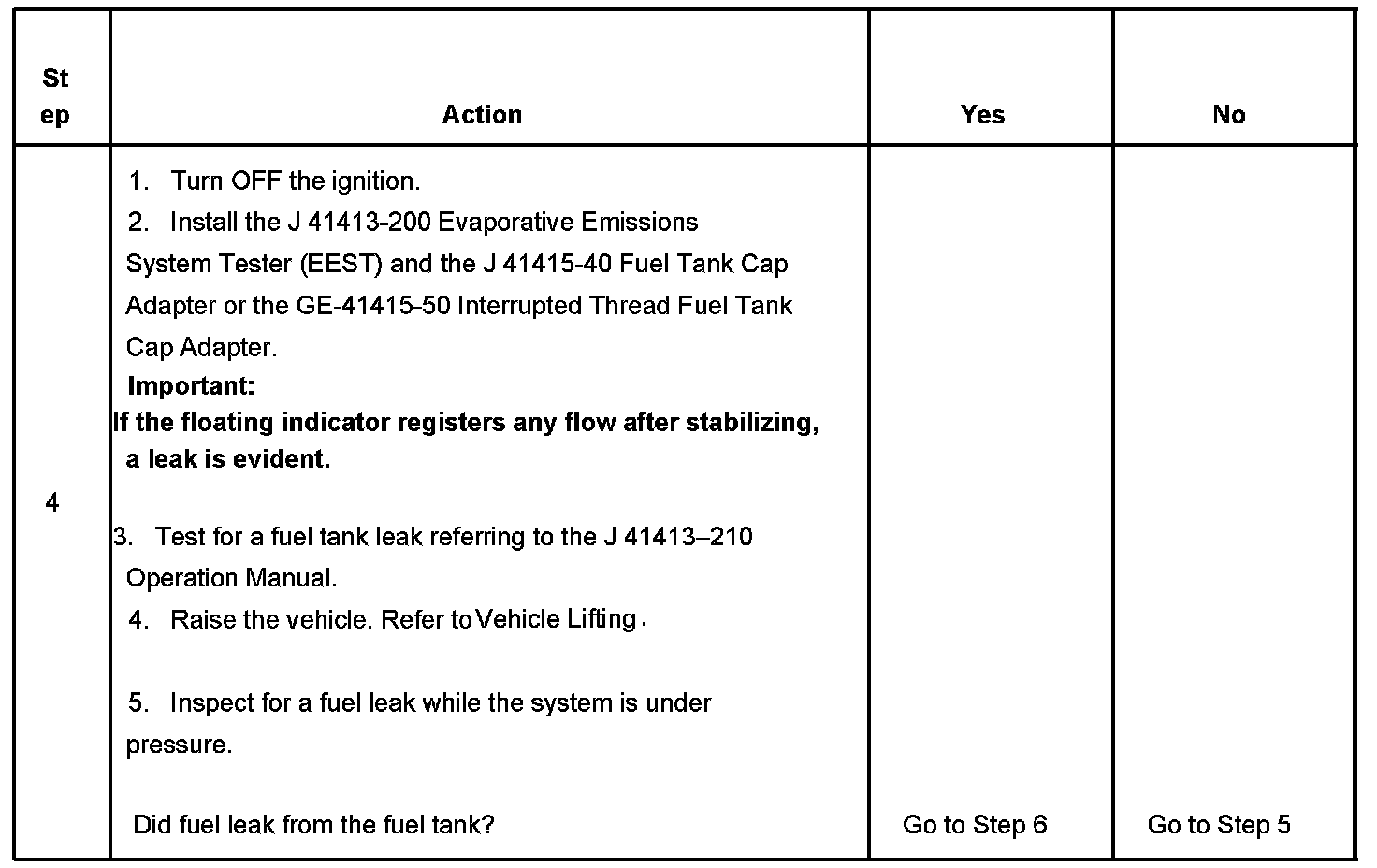 4. This step tests for fuel leaks below the fuel tank fuel level.