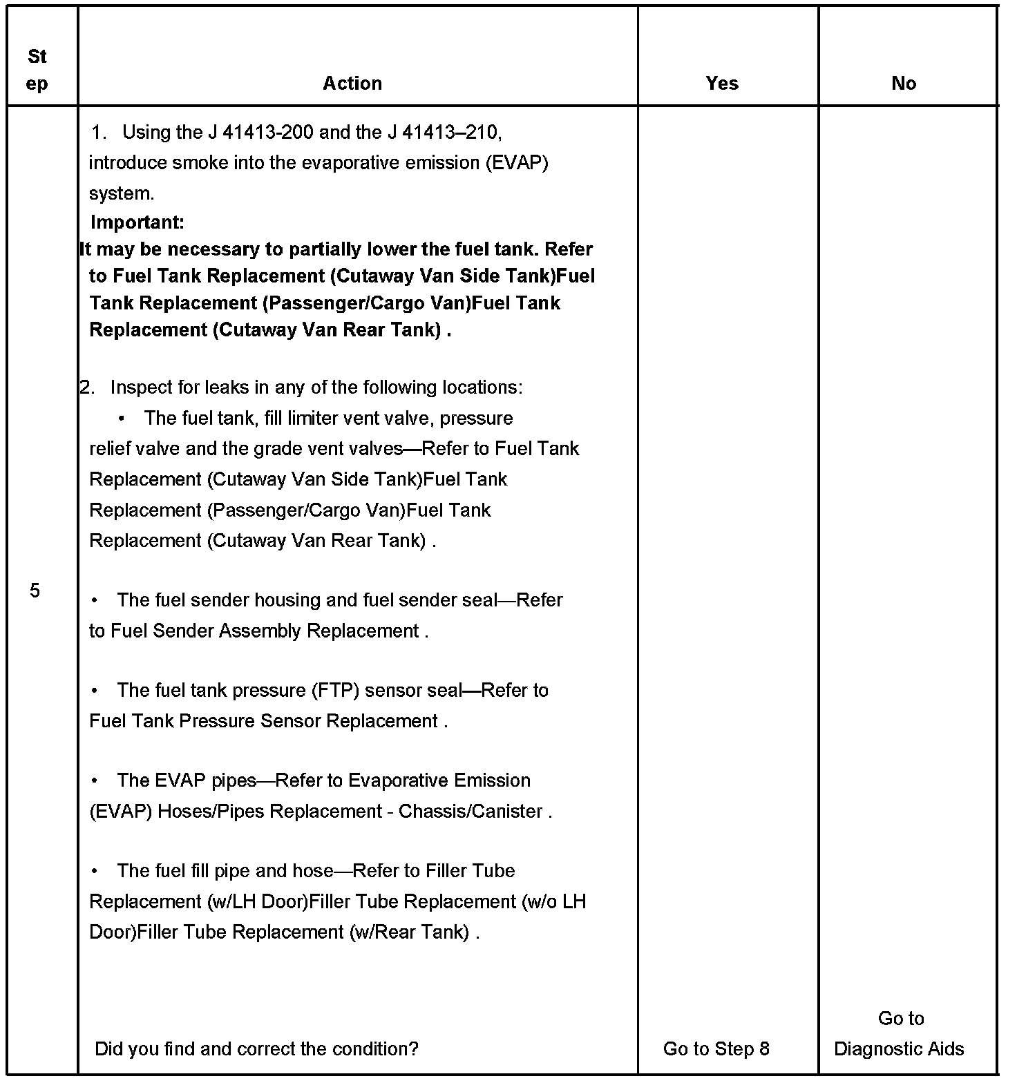 5. This step tests for fuel vapors escaping above the fuel level in the fuel tank.