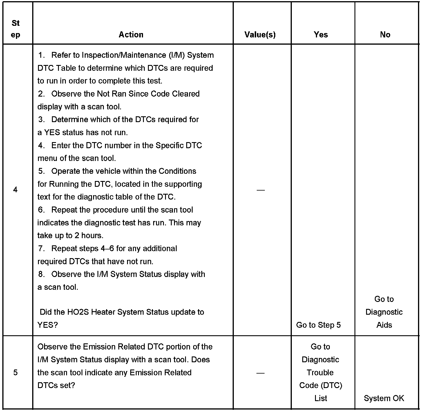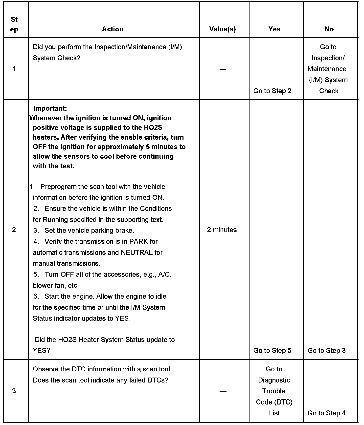 The purpose of this test is to satisfy the enable criteria necessary to execute I/M readiness diagnostics for the Heated Oxygen Sensor (HO2S) Heater System. The test may be used to set the I/M System Status to YES.