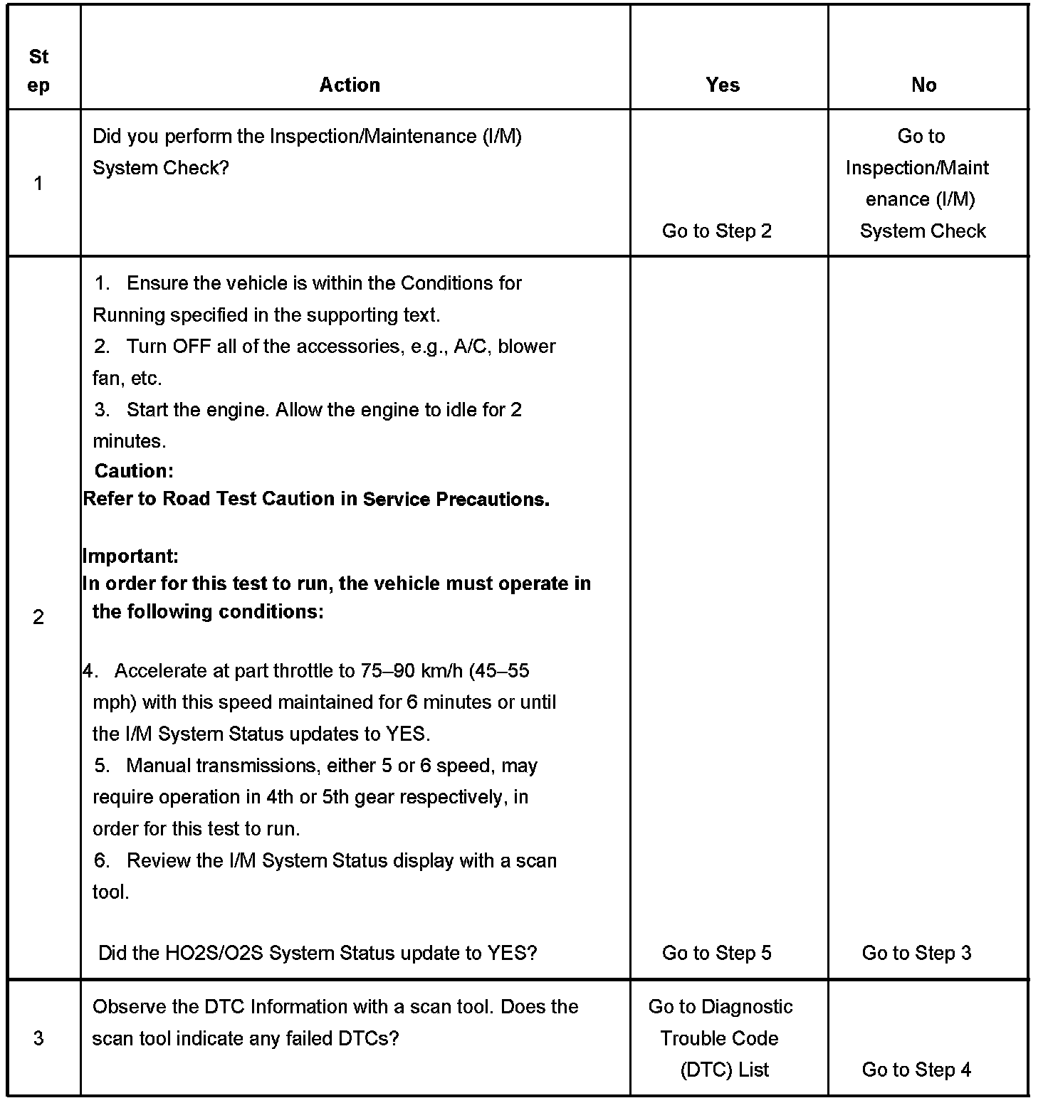 The purpose of this test is to satisfy the enable criteria necessary to execute I/M readiness diagnostics for the Oxygen Sensor (O2S/HO2S) System. The test may be used to set the I/M System Status to YES. The I/M System Status Display on the scan tool provides an indication of whether the control module has completed the required tests. The I/M System Status does not indicate that the tests have passed or failed. When all of the diagnostics for a specific system have run and passed the I/M System Status will update to YES, indicating a determination was made, even if all of the other tests for that system have not run.